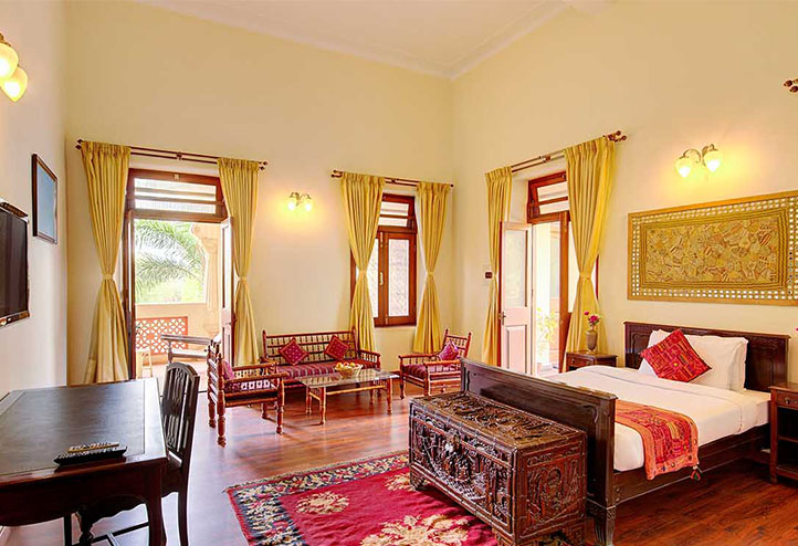 The resort also provides various amenities including swimming pool, Ayurveda spa, gym, indoor games, lawns, ATV rides, horse & bullock cart rides, and mini fridge.