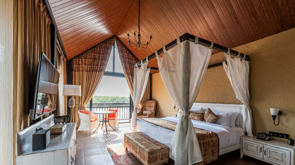 Couples- For couples looking for a romantic getaway, Bougain Villa, Premium Rooms, and Maharaja Rooms are perfect choices here. Each room has a spacious king-size bed, a balcony offering scenic views and is equipped with a cosy wooden hammock, a mini fridge, a sleeper sofa, AC, an electronic safe, and beautifully intricate decorations.