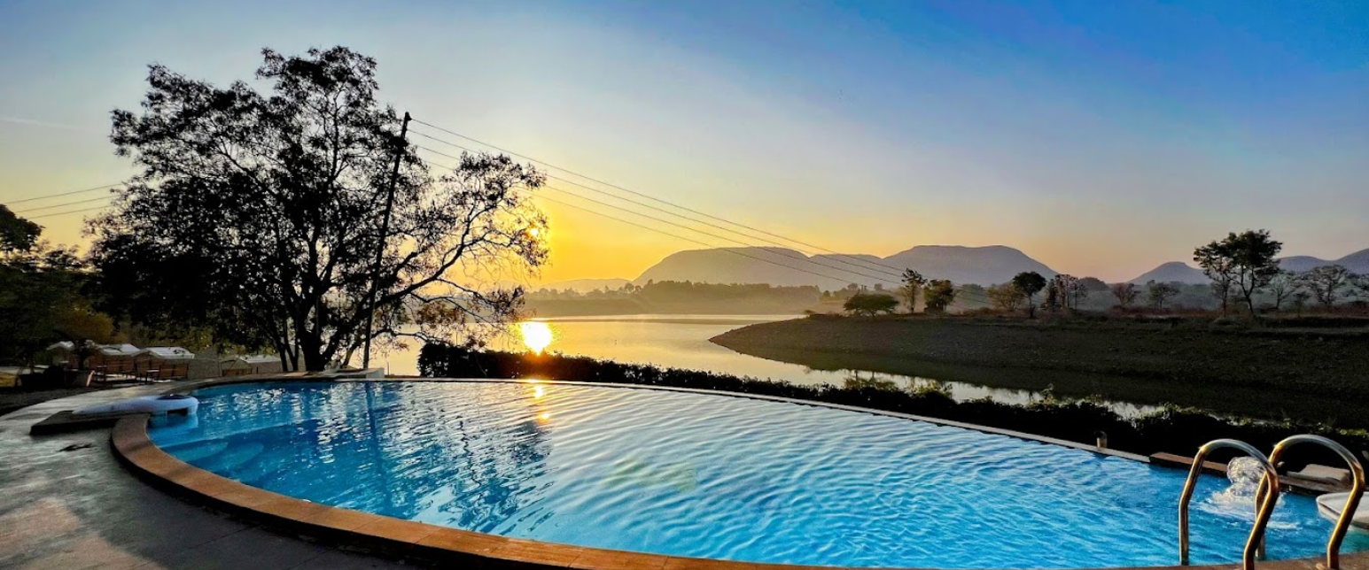 Luxury Adventure Retreat is a leisure stay option overlooking the Mahiravni Dam and features an infinity pool. It comes with an airy restaurant and a colourful café with scenic views. Besides, it provides various amenities including infinity pool, arcade, rope activities, complimentary breakfast, hygiene kits, and free parking.