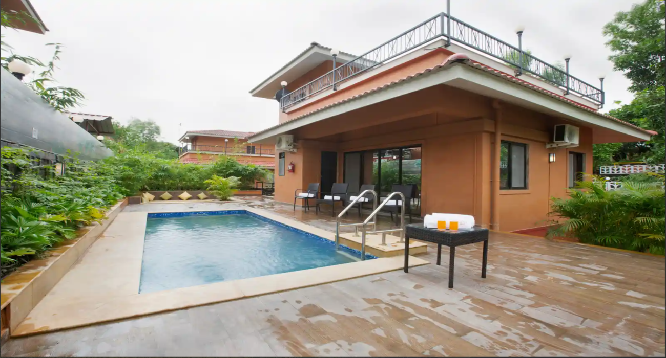 Ambiance- Situated very close to the Pinjal River, this Resort in the Vikramgad district is the ultimate definition of an eco-friendly yet luxurious villa in town. This is a four-bedroom private villa with a large pool to cater to your whims.