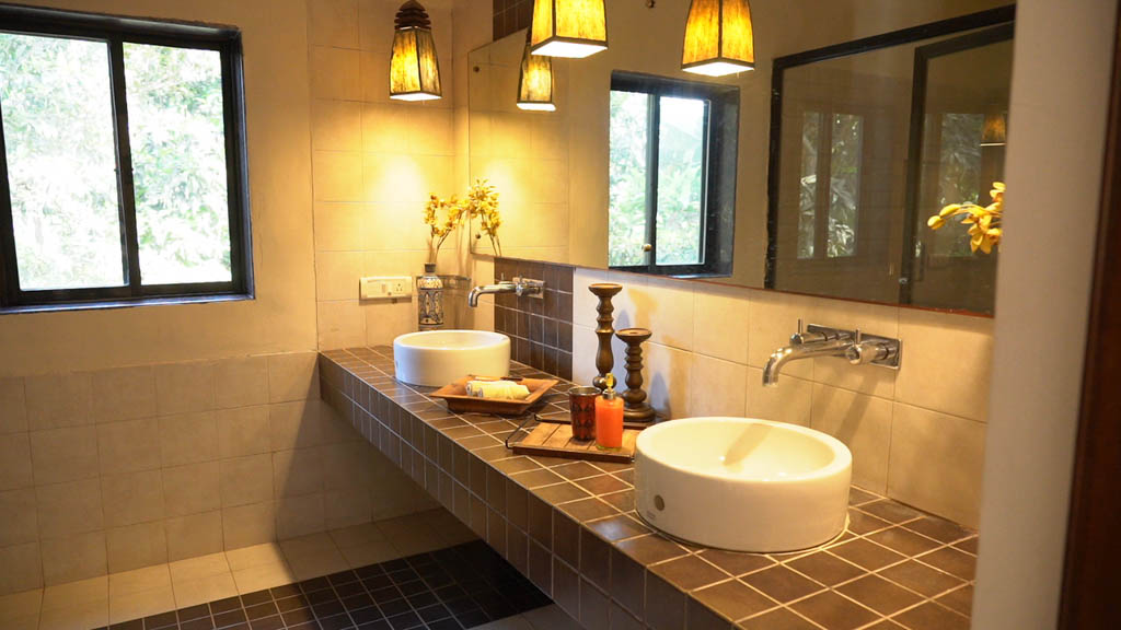 Facilities- Constructed with red laterite stones of the region, the Swiss Tents and cottages are equipped with plush decor and arrangements. The restaurant serves authentic local dishes and relies on only fresh farm produce. You can escape into the library to read a book.