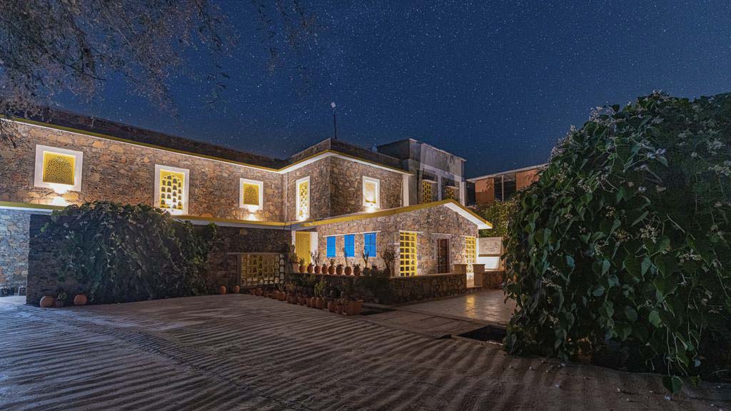 The resort is located in the town of Alwar and it has a swimming pool, grand view of the Aravallis, and offers guided nature walks,  and organizes trekking expeditions.